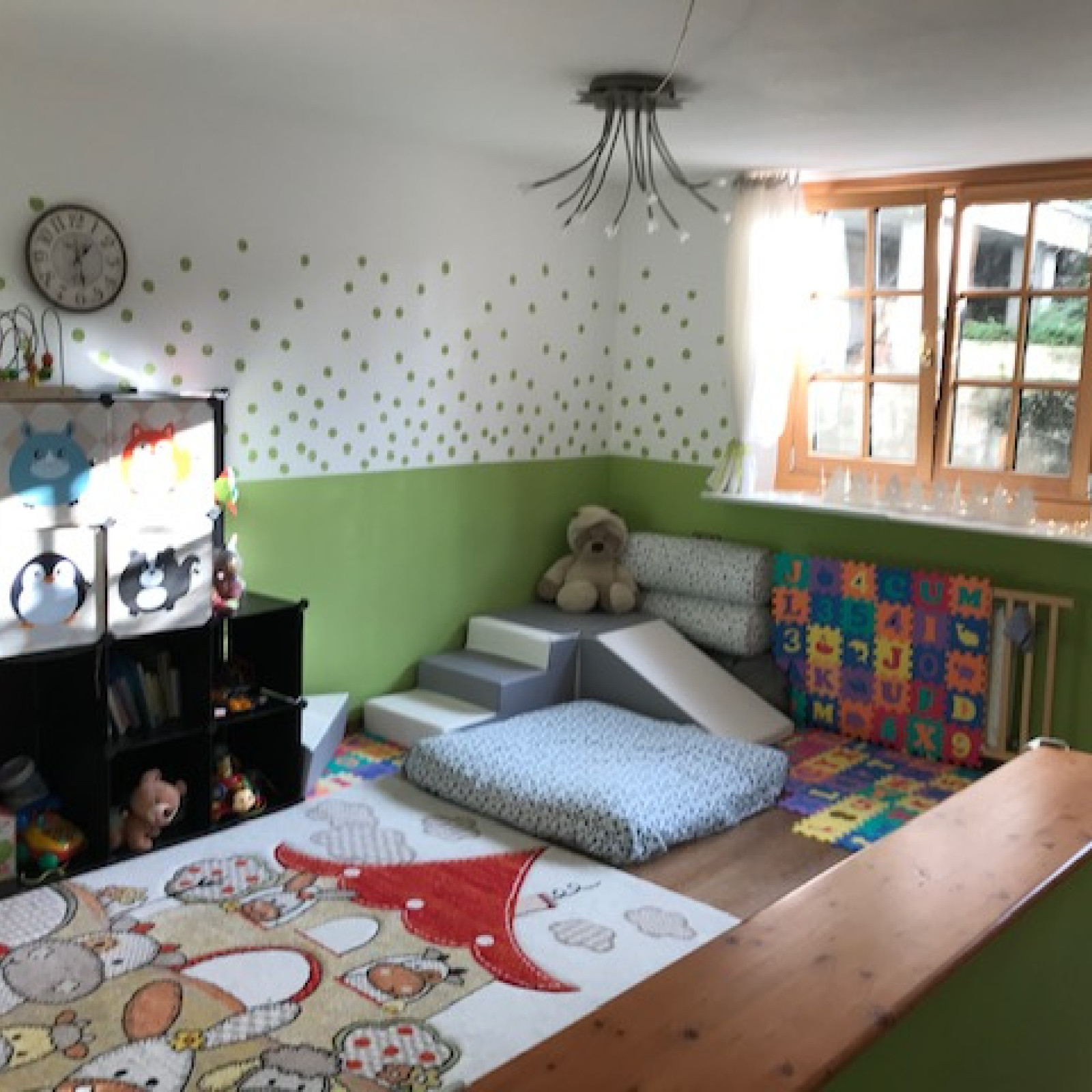 Die Räume meiner Kindertagespflege bieten den Kindern viel Platz zum Toben, Spielen und Schlafen. Es stehen zwei liebevoll eingerichtete Räume mit einer Fläche von insgesamt 50 Quadratmetern, sowie ein kleiner Garten für vielfältige Entdeckungen bereit. Die Kindertagespflege findet in angemieteten Räumen statt. Die Einrichtung ist modern und mit der kindgerechten Ausstattung fühlen wir uns hier jeden Tag wohl. Sicherheit ist beim Spielen wichtig und so sind die Räume mit verschiedenen Features ausgestattet, die unbekümmertes Spielen ermöglichen.